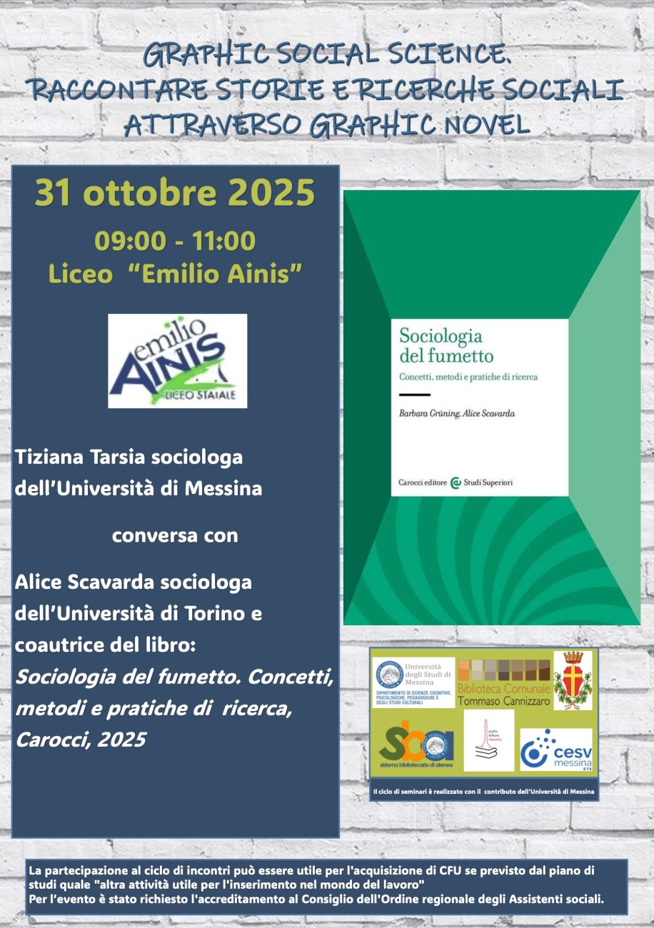 Tiziana Tarsia, sociologa dell’Università di Messina, conversa con Alice Scavarda, sociologa dell’Università di Torino e coautrice del libro: Sociologia del fumetto. Concetti, metodi e pratiche di ricerca, Carocci, 2025.