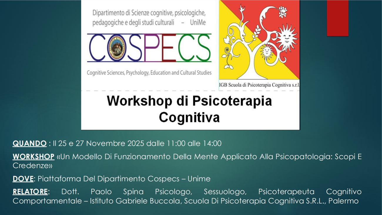 WORKSHOP: «Un Modello Di Funzionamento Della Mente Applicato Alla Psicopatologia: Scopi E Credenze»